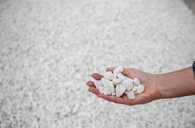A very popular, brilliant white rock that makes any landscape look better. Approximately 1/2” to 1” in size.